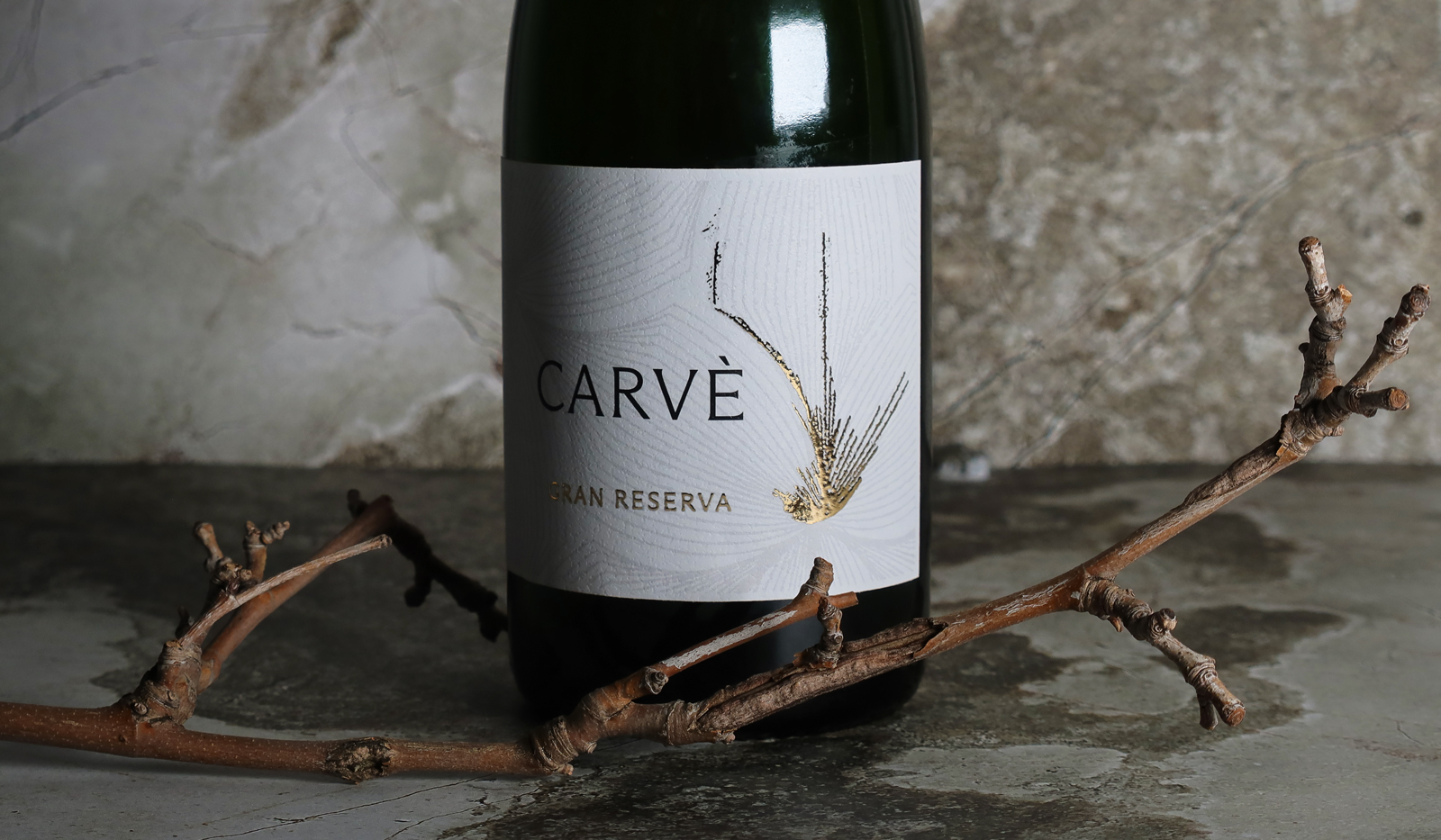 Proyecto de diseño de packaging para cava gran reserva edición especial Carvé. La propuesta combina un estuche portabotellas en cartón corrugado con un patrón geométrico inspirado en la naturaleza, con el acabado de textura blanca aportando volumen, sencillez y elegancia. La etiqueta, sobre papel verjurado, refuerza la naturalidad con un patrón en gris claro y un detalle en estampado oro que simboliza crecimiento y sofisticación. Un trabajo que une branding, diseño editorial y dirección de arte para transmitir la esencia premium de un gran reserva.